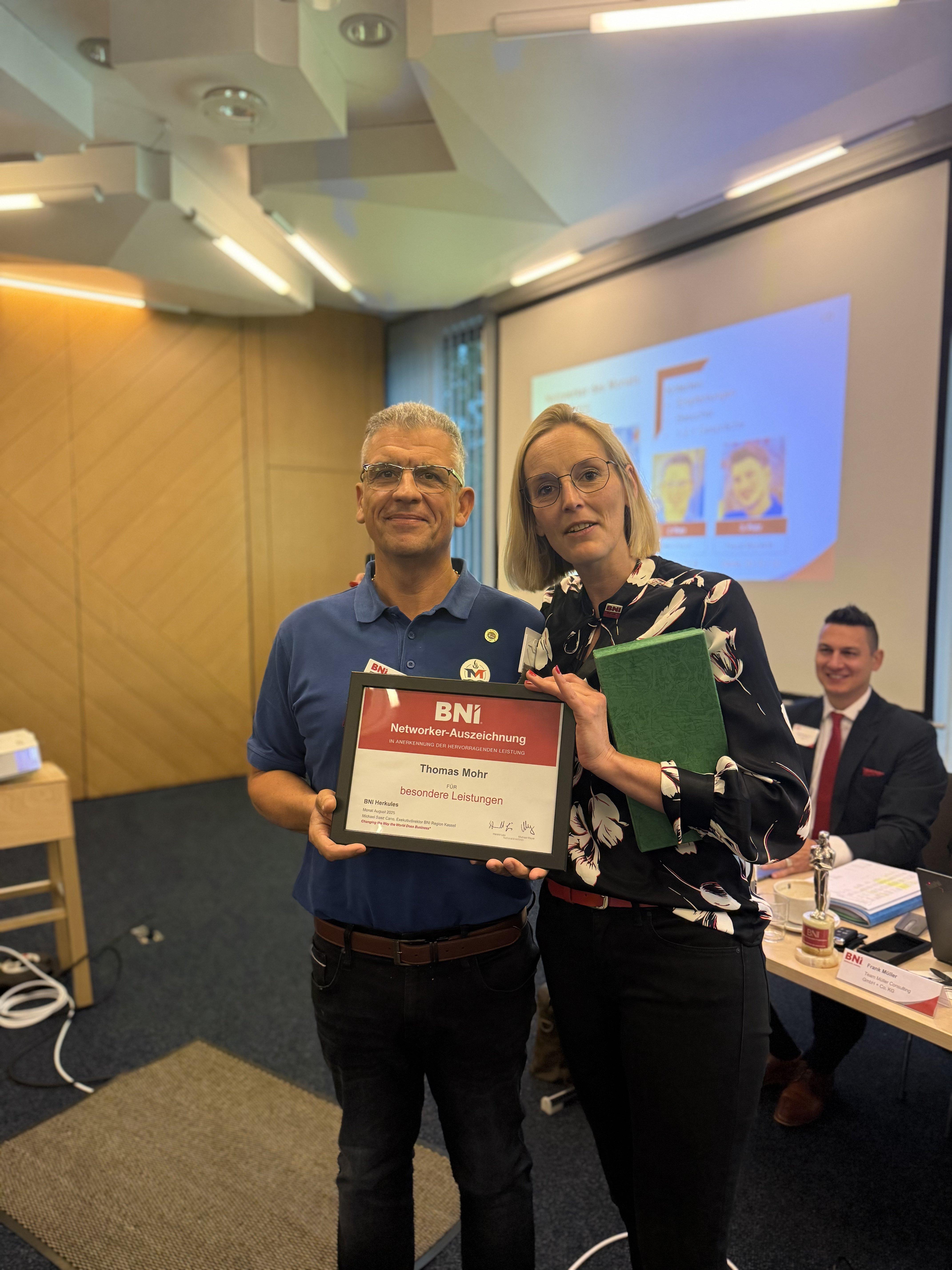 Führungsteamwechselwoche bei BNI Region Kassel, Deutschland. So kann die Woche zu Ende gehen, es war ein überragendes Unternehmerteamtreffen heute Morgen in Kassel mit 50 Unternehmen beim BNI Unternehmerteam Herkules Kassel, fast 11 Millonen Euro Nettomehrumsatz nur aus Empfehlungen allein in den letzten 12 Monaten! Wir bedanken uns bei dem Führungsteam der letzten 12 Monate und freuen uns alle gemeinsam auf das neue Team, deren jetzt schon spürbares Engagement, die gelebte Kompetenz und das nächste Level!